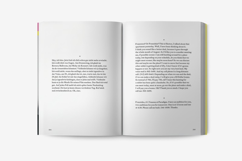 "(…) New York Diary is neither a monograph nor a memoir. But it is a bit of both. It tells the story of a girl from East Germany who comes of age discovered as a photo model on the streets of New York City in the late 1990s. The story is told in three parts: through photographic snapshots of the city and its people, through messages on an answering machine and finally through ephemera and memorabilia such as personal notes, polaroids, behind the scenes, fashion editorials, campaigns. All in all, it is an ode to the city of New York at a specific point in time.“
